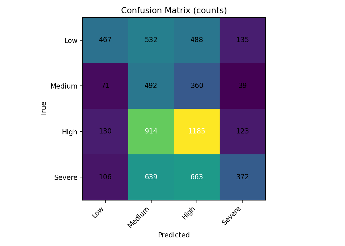 Rationale for Severity Classification: The original dataset contained 108 distinct incident types with severe class imbalance. To create an operationally meaningful and statistically viable classification problem, we categorized incidents into four severity levels based on delay duration: