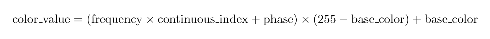 rgb-base, rgb-freq and rgb-phase with the continuous sine coloring algorithm