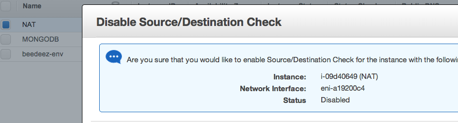 - Launch instance wizard, use 'Community AMIs' and search for 'NAT', select one like