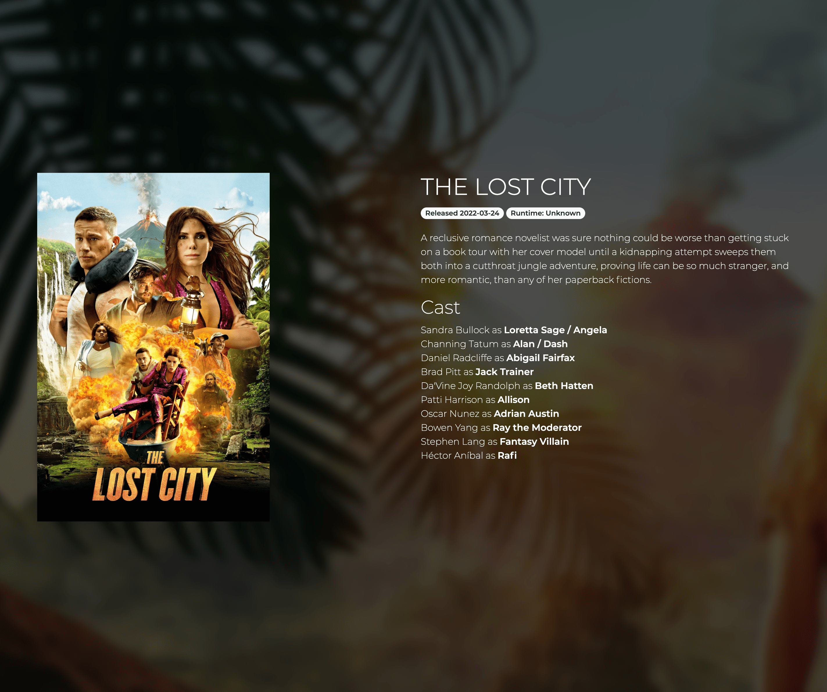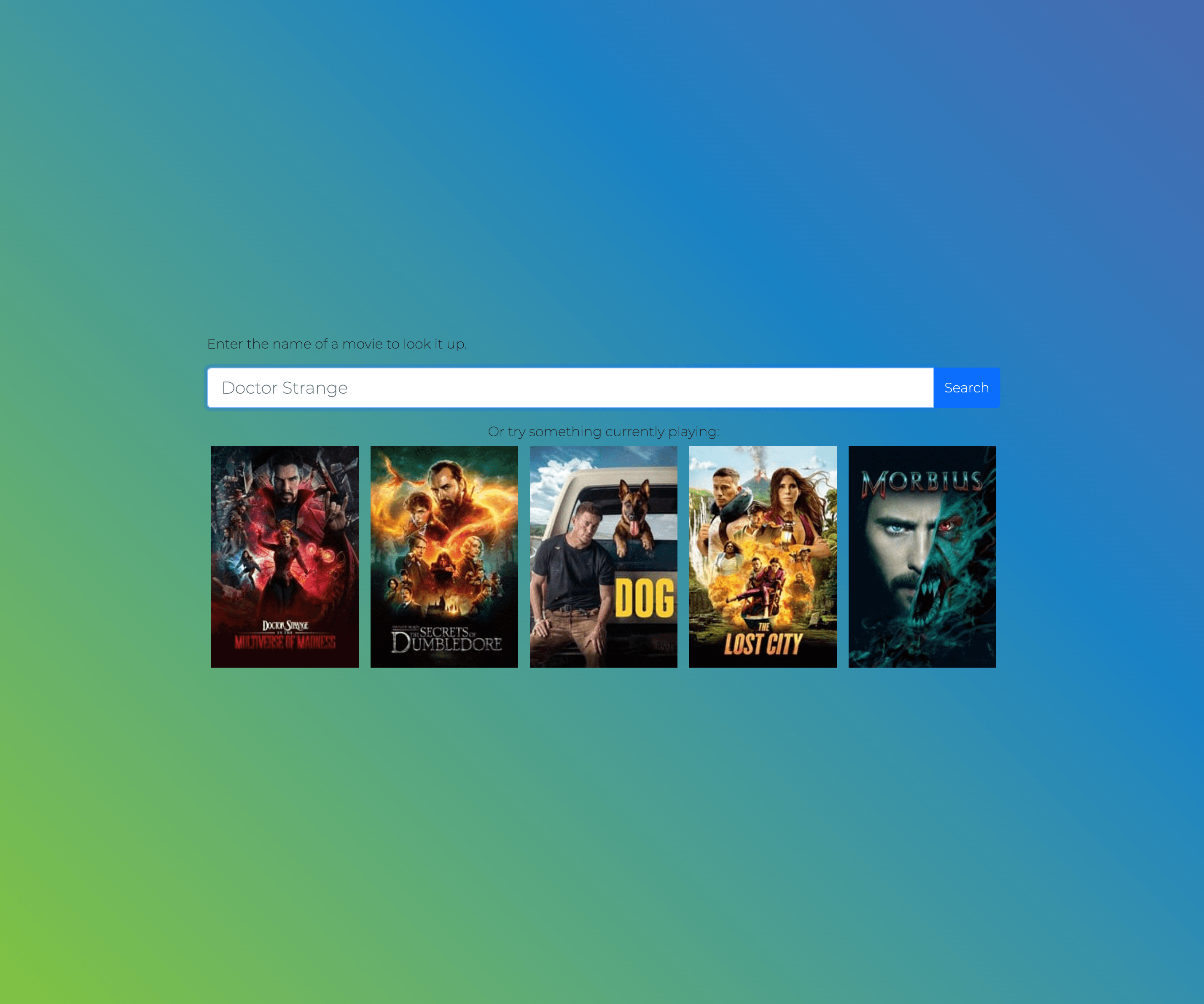 The Movie DB Thing Type the name of a movie to get a page with information about it. Installation git clone https://github.com/dprevite/themoviedbthing.git cd themoviedbthing composer install npm install npm run dev
