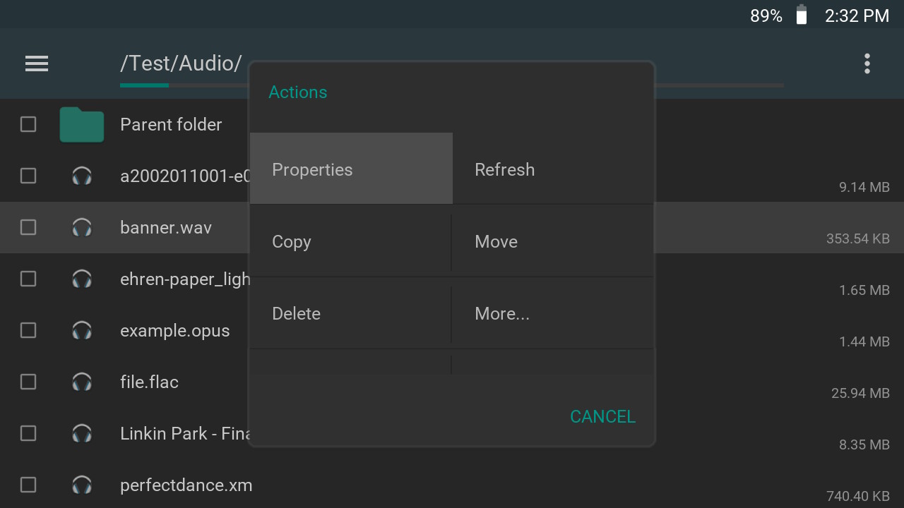 - Audio playback. (Following formats are supported: FLAC, IT, MOD, MP3, OGG, OPUS, S3M and WAV)