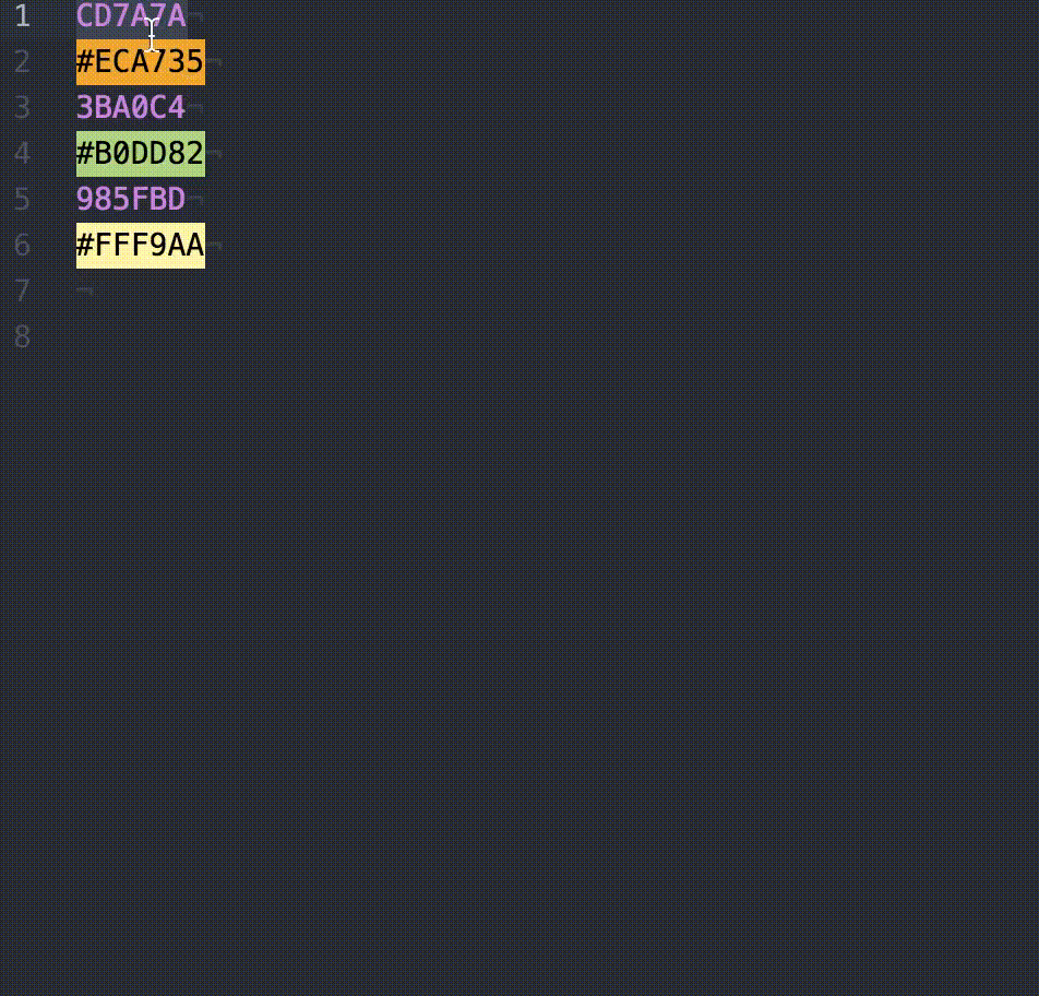 name-that-color package Convert CSS hex code to human readable color name. Configure keyboard shortcut command name-that-color:name-selection This line will add a keyboard shortcut for control + alt + command + n in mac Atom > Preferences > keymap.cson > "ctrl-alt-cmd-n": "name-that-color:name-selection"