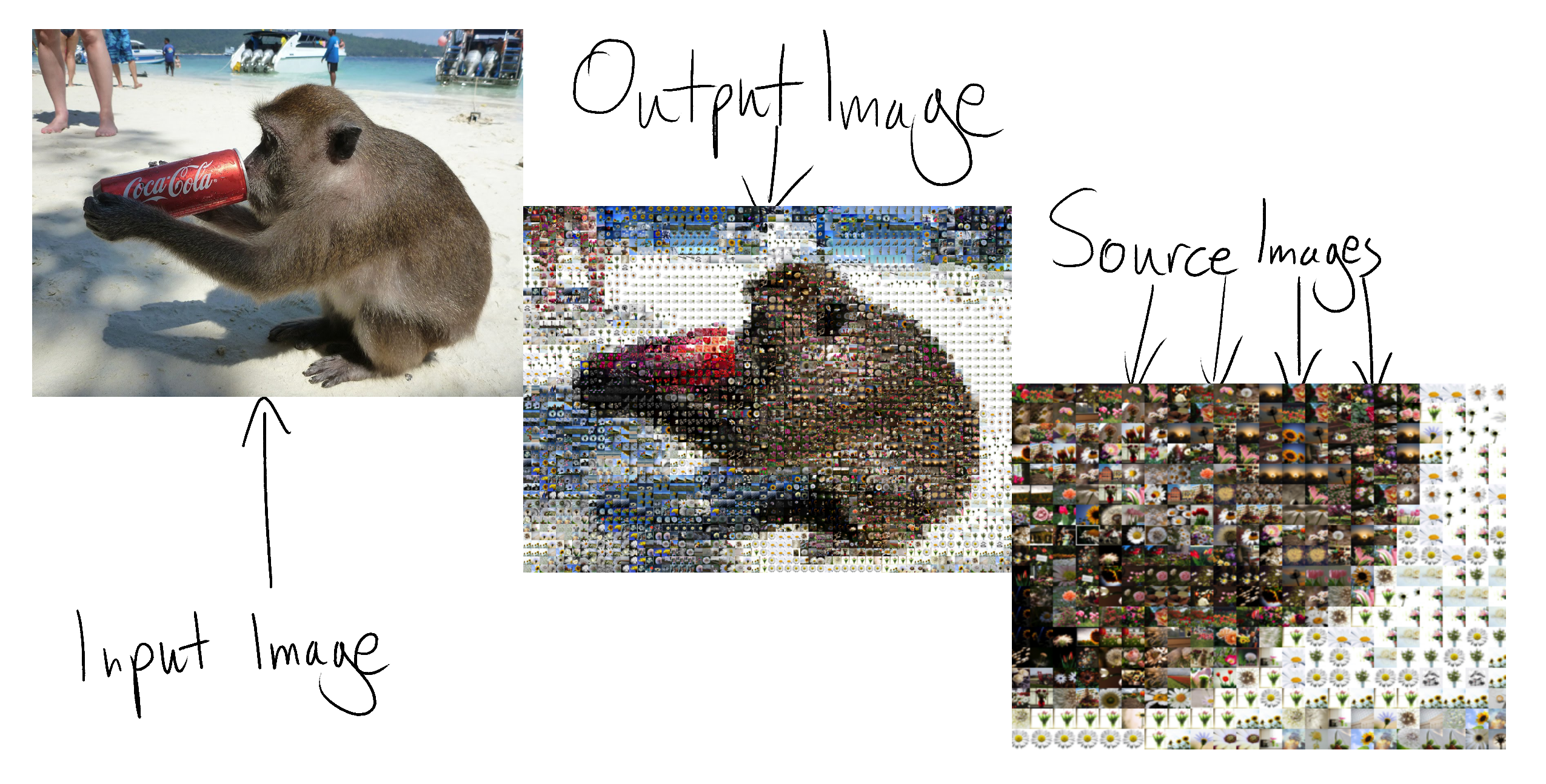 python mosaic.py -i <input_image> -o <output_image> -d <source_images_directory>.
