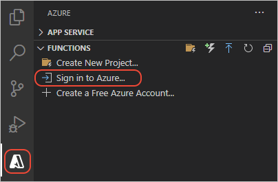 - Once the Azure extension is installed, sign into your Azure account by navigating to the Azure explorer, select Sign in to Azure under Functions, and follow the prompts in the browser.