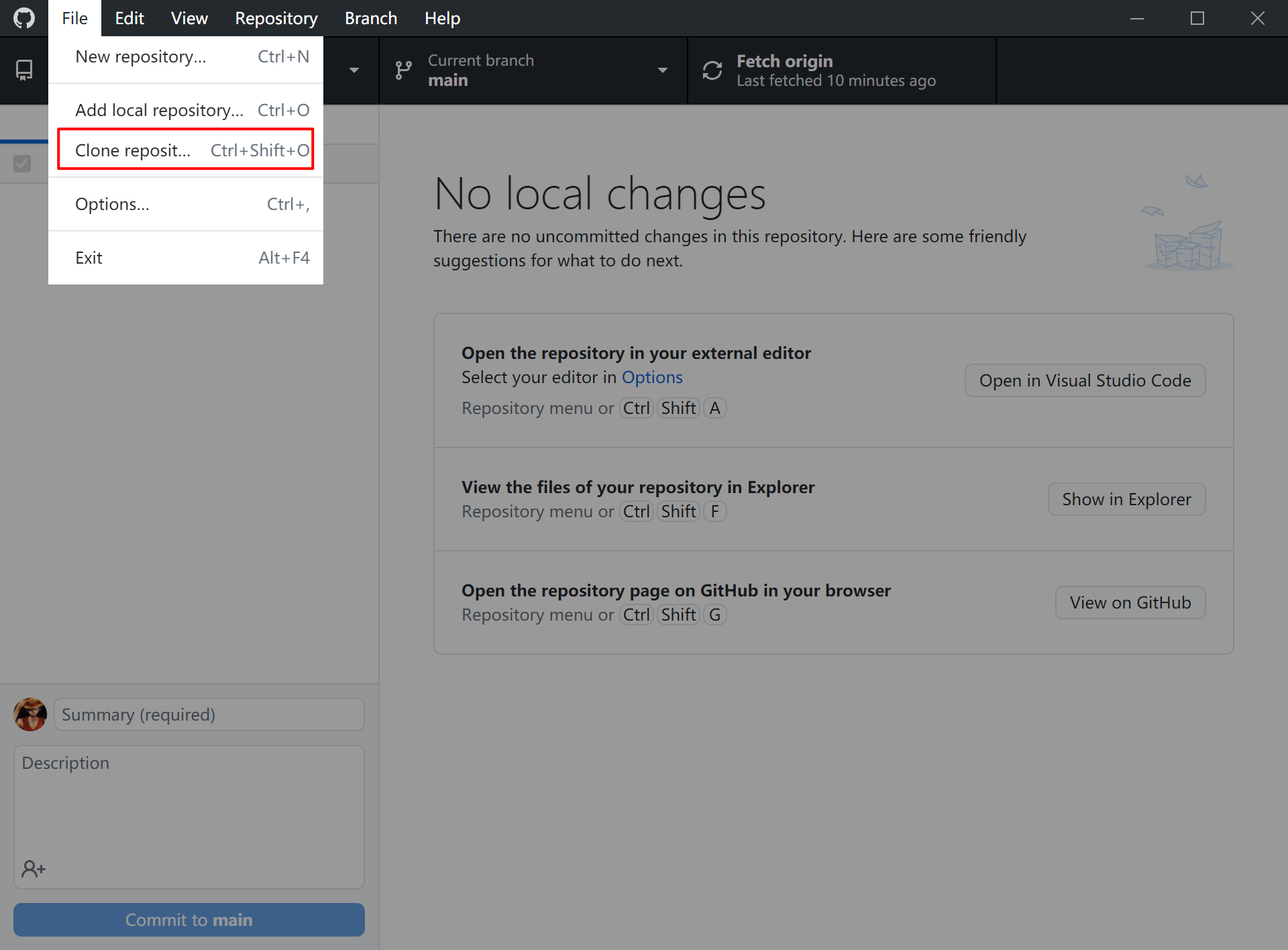 下载后完成安装,首次打开需要输入github的账号和密码,登录之后可以clone项目了,选择File菜单如下: