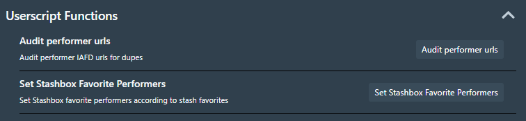 Stash Performer Audit Task Button | Adds a button to the performers page to check for duplicate performer urls. Task output shown in stash logs | ✔️ | INSTALL USERSCRIPT |