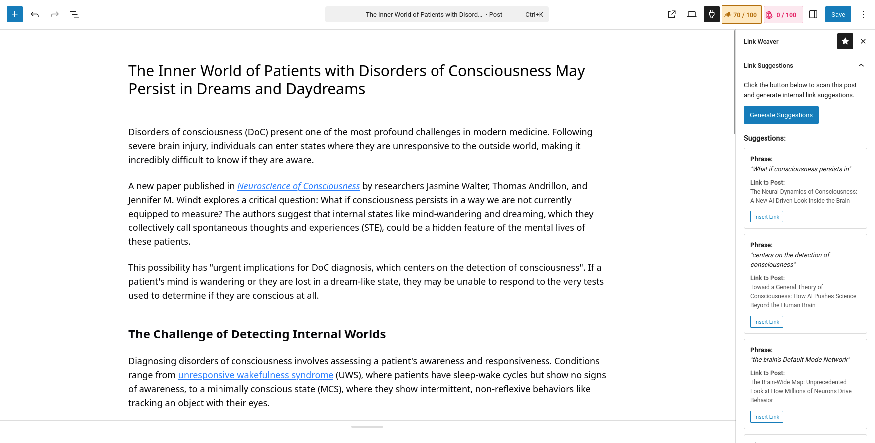 gemini-2.5-flash) to understand the context of your content and provide highly relevant link suggestions. - Gutenberg Integration: A clean, intuitive sidebar panel right where you need it in the post editor.