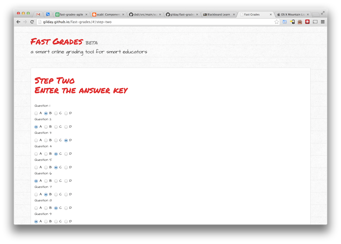 Next, enter the answer key using the form so the system is aware of the correct answers.