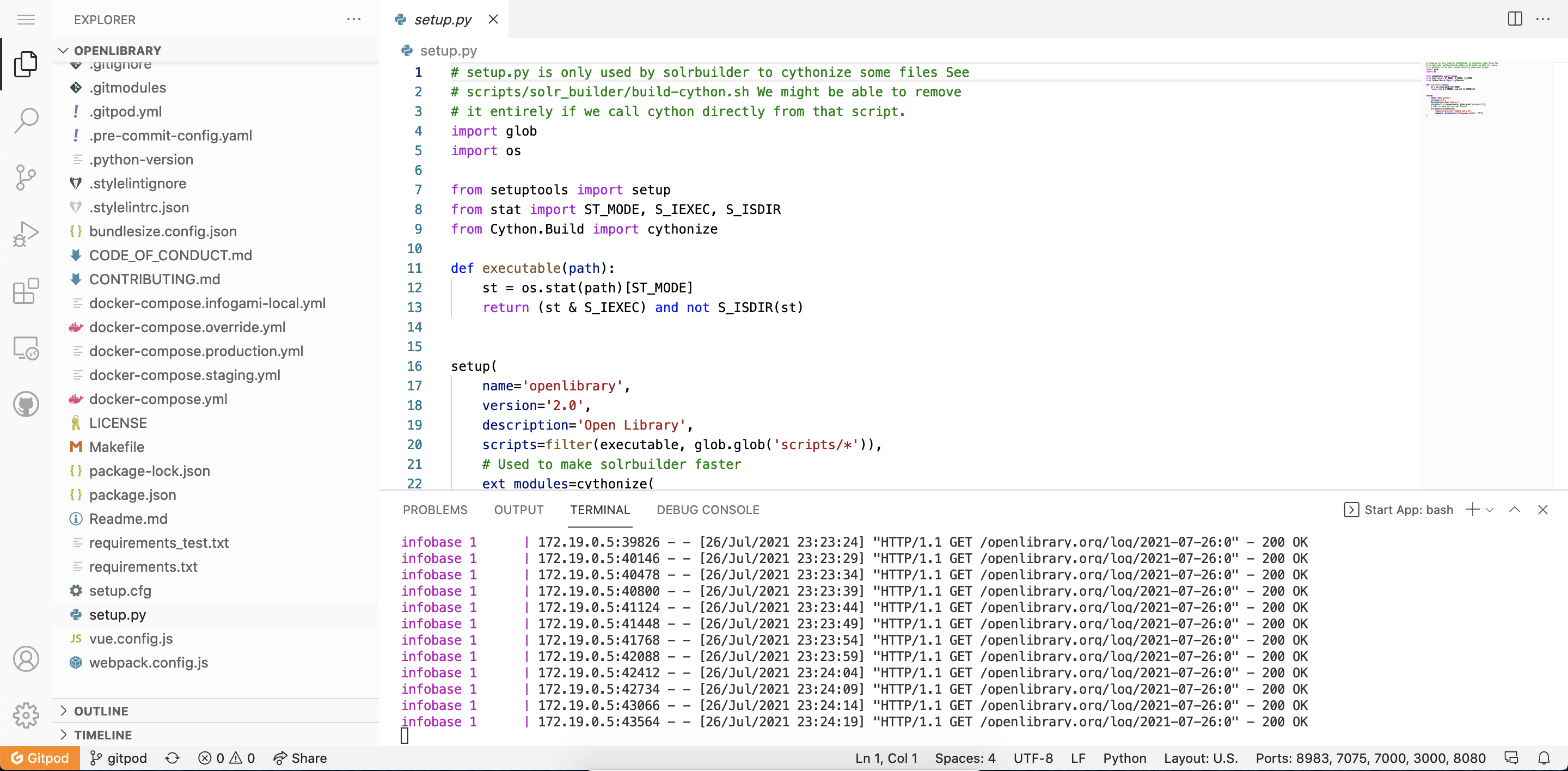 sudo chown -R gitpod:999 /workspace/openlibrary/You can see an explanation for why here - gitpod-io/gitpod#4851