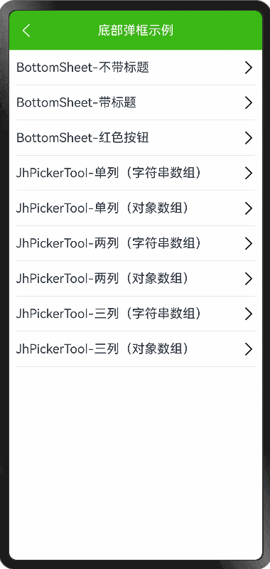 - 弹框(中间、底部、toast、dialog、自定义弹框)