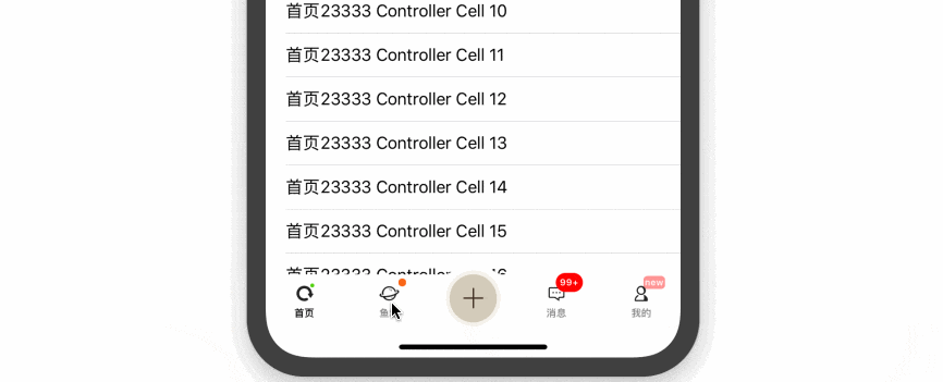 自动监测是否需要添加“加号”按钮,并能自动设置位置[EN] It is able to check if need to add a PlusButton automatically. | CYLTabBarController 既支持类似微信的“中规中矩”的 TabBarController 样式,并且默认就是微信这种样式,同时又支持类似“微博”或“淘宝闲鱼”这种具有不规则加号按钮的 TabBarController 。想支持这种样式,只需自定义一个加号按钮,CYLTabBarController 能检测到它的存在并自动将 tabBar 排序好,无需多余操作,并且也预留了一定接口来满足自定义需求。“加号”按钮的样式、frame均在自定义的类中独立实现,不会涉及tabbar相关设置。 |