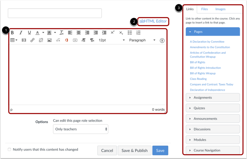 As the screenshot below, students are hard to format the contents when inserting multiple media, including image, link, and text. Possible solution is to place the "add image, add text..etc" as the widget on the top of the page, and use a big column for users to edit their content as the example of Canvas.