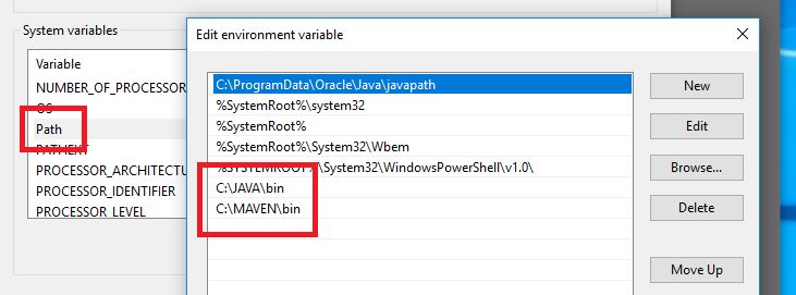 - Add Maven to your environment PATH, screenshot below.