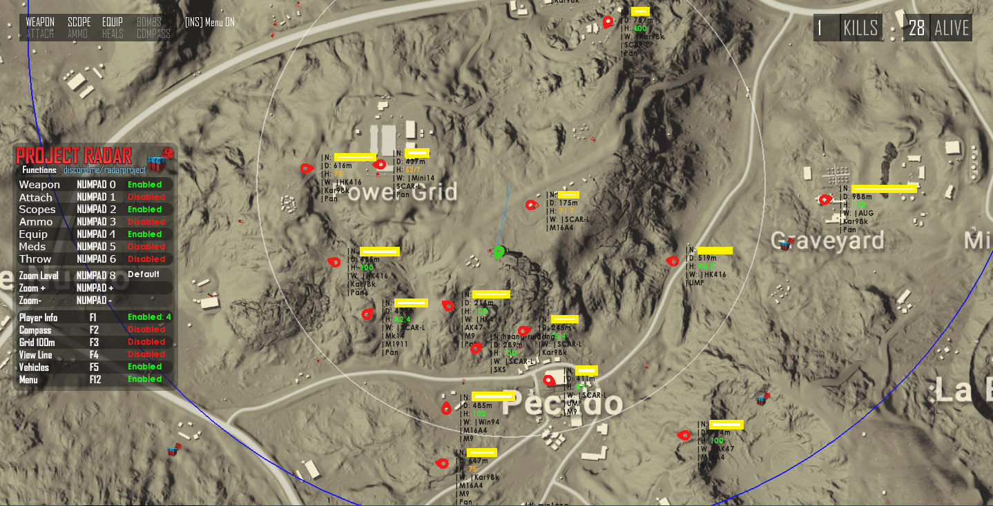 - F1 -> Change Player Info (Name, Distance, HP, Weapon) - Изменить выводимую информацию(Имя, расстояние, здоровье, оружие)
