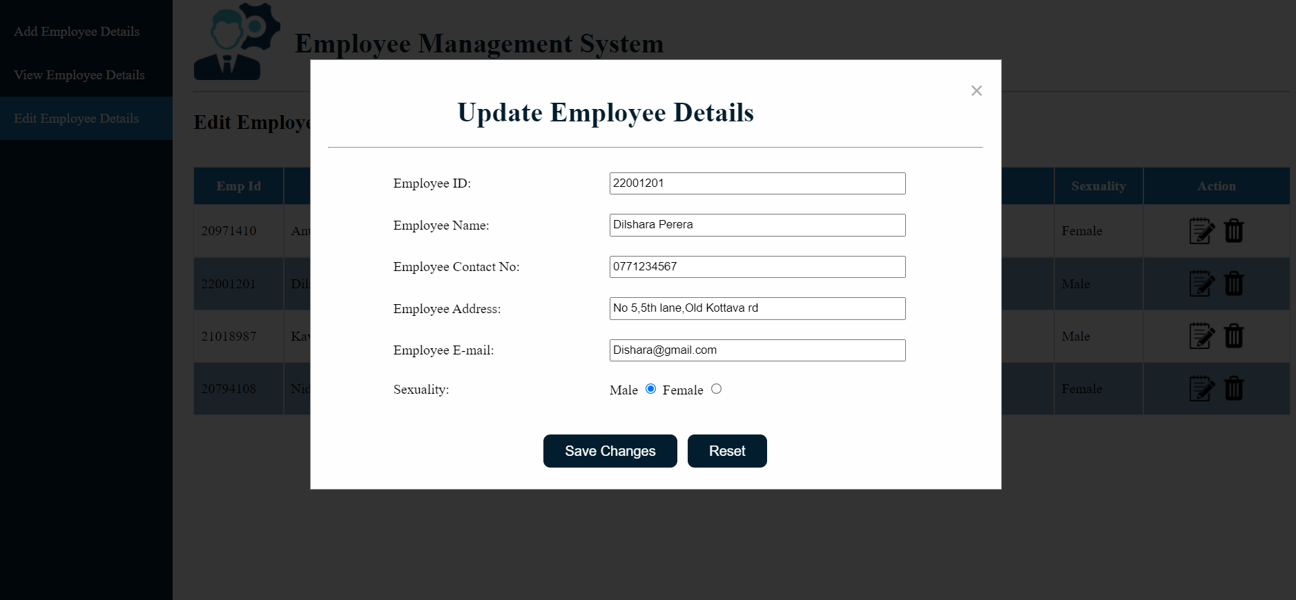 - Update Employee Details