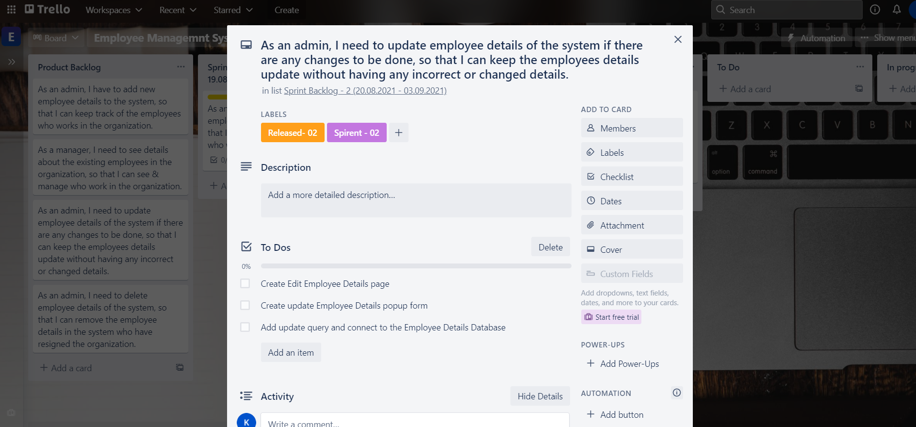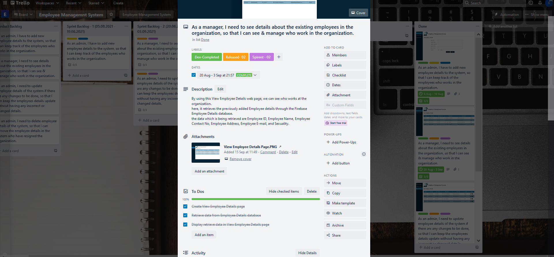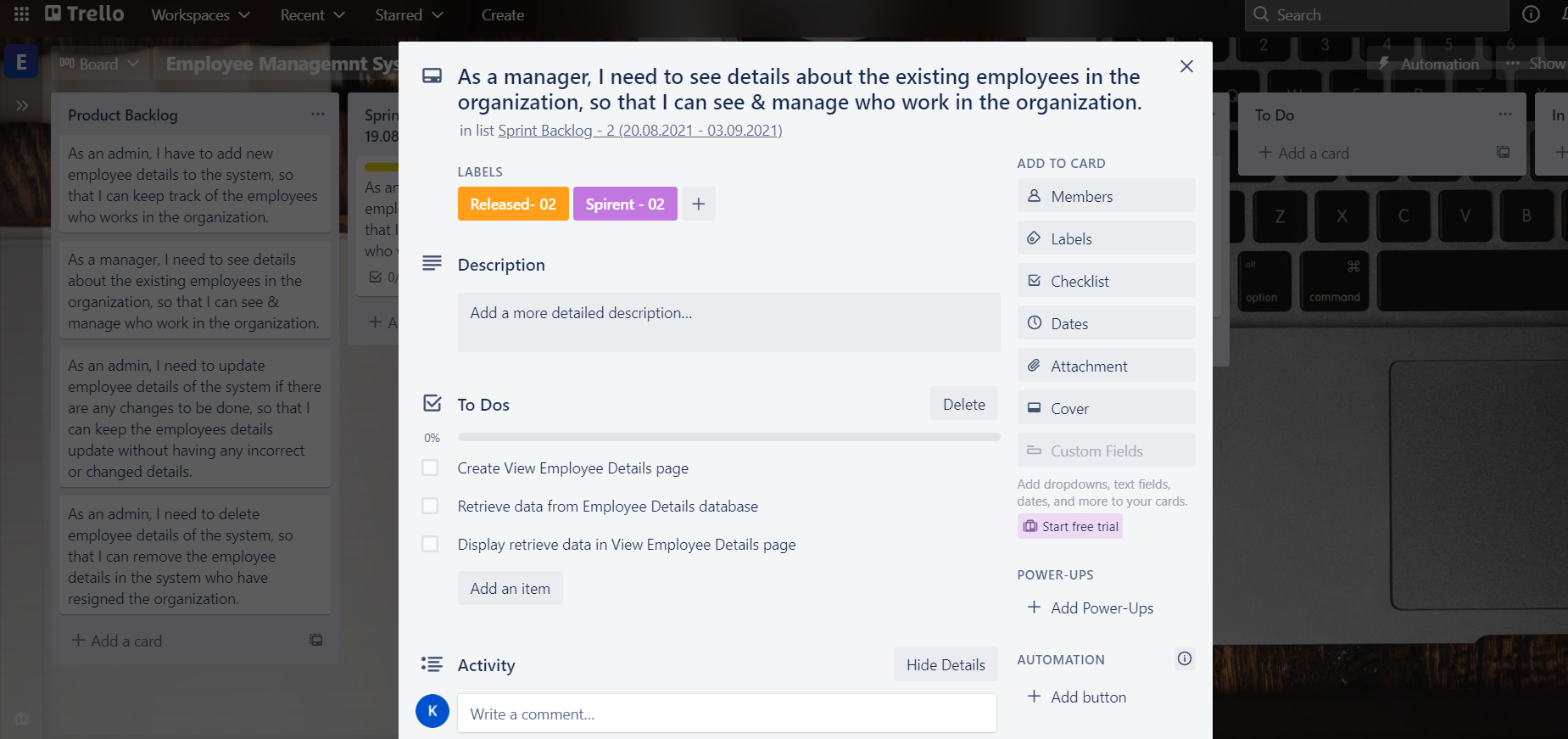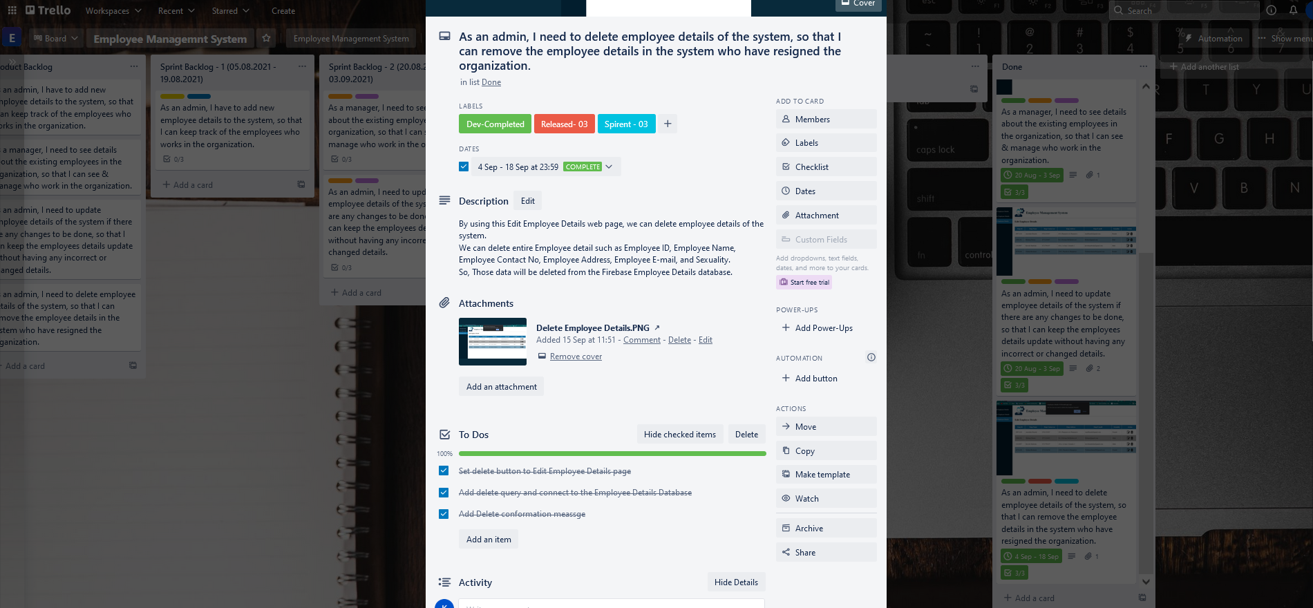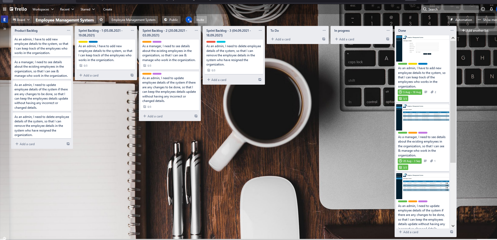 - I used Trello as a project management tool in my Employee Management System web application.