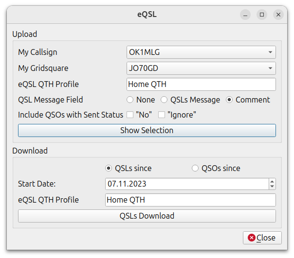 eQSL reports can be sent/received to/from eQSL service via Service → eQSL.