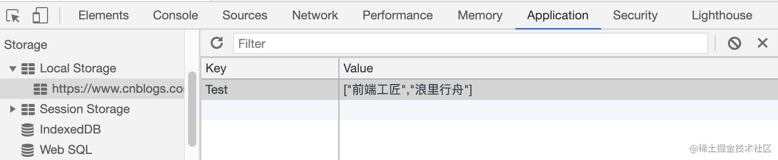 setLocalStorage('Test',['前端工匠','浪里行舟']);