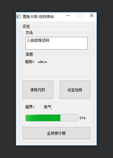 一个摸鱼修仙的小游戏,通过QT创建。有丹药、灵石系统,持续更新。