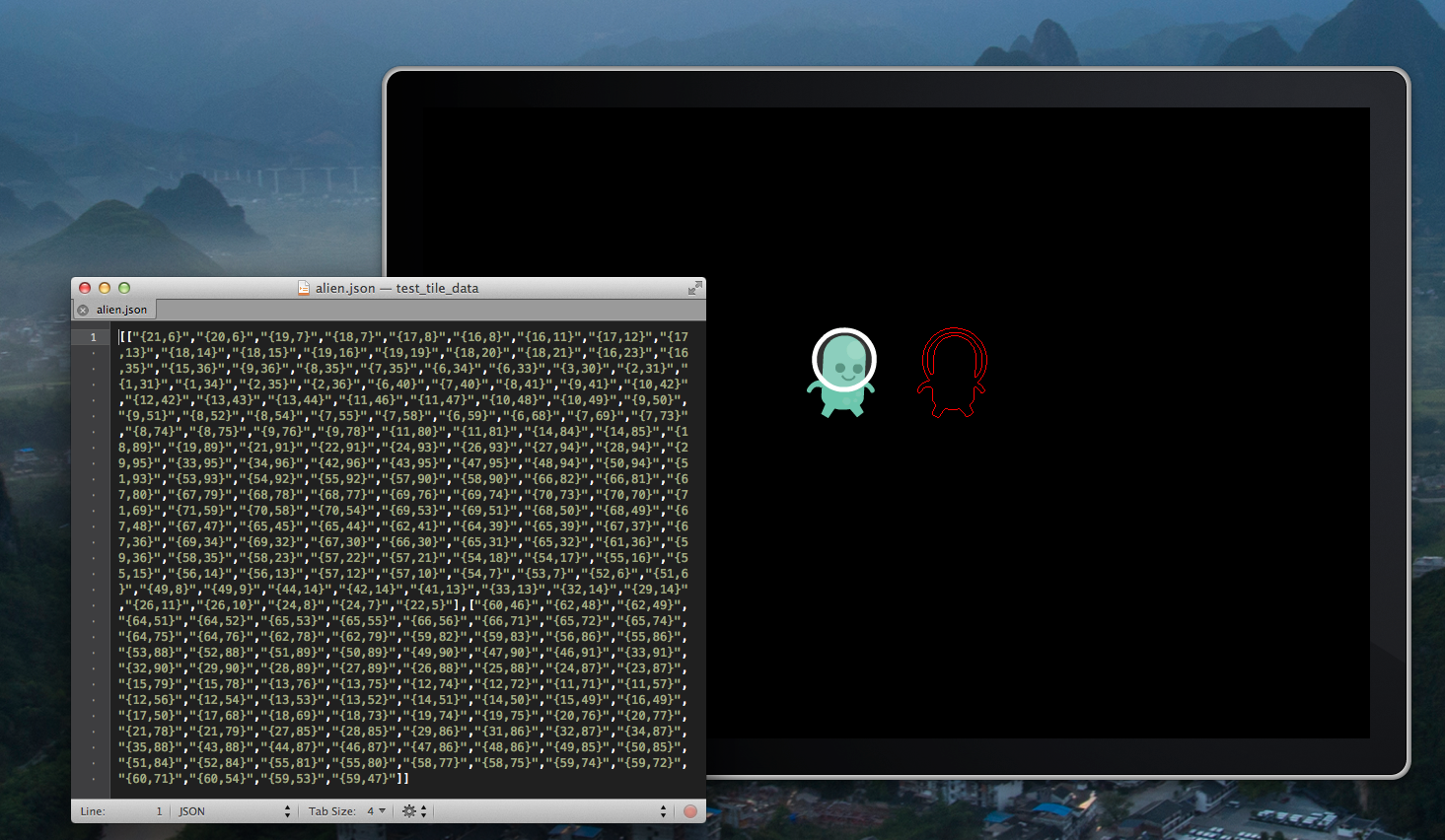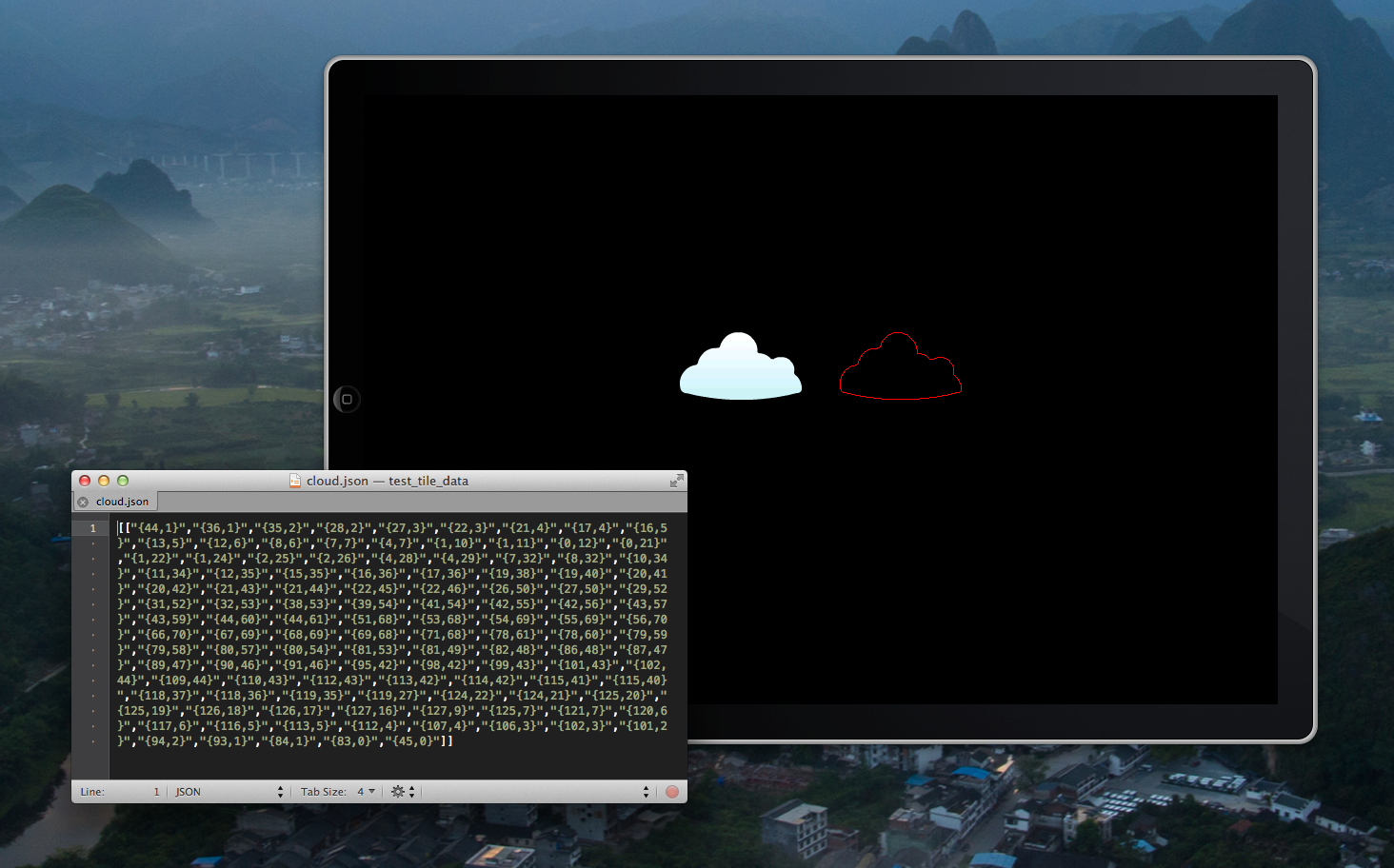 This is an implementation of the Moore Neighborhood algorithm used to trace the contours of a given image and output a JSON (or plist) file of the resulting pixel coordinates. If an image is made up of more than one body, the coordinate data for each body will be stored in a separate array. Coordinate data is of the form @"{x,y}" and can be parsed from an iOS application using CGPointFromString.