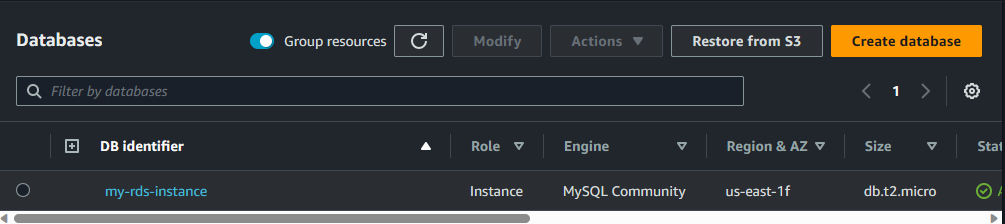 - The RDS instance is created using the AWS RDS service and is managed by Terraform.