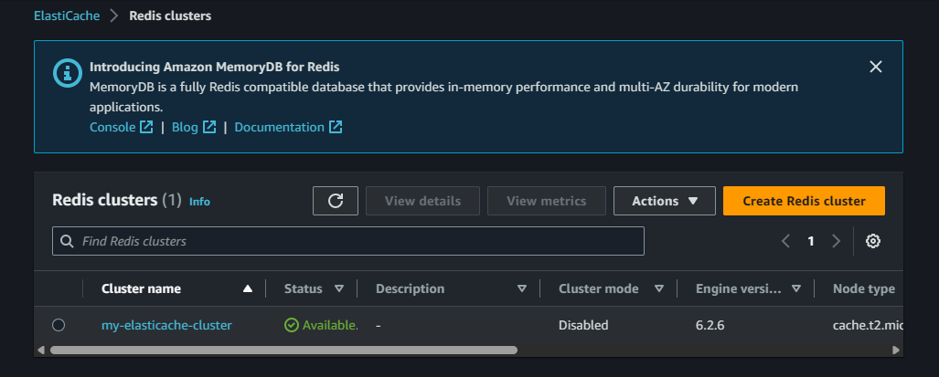 - The Elastic Cache instance is created using the AWS RDS service and is managed by Terraform.
