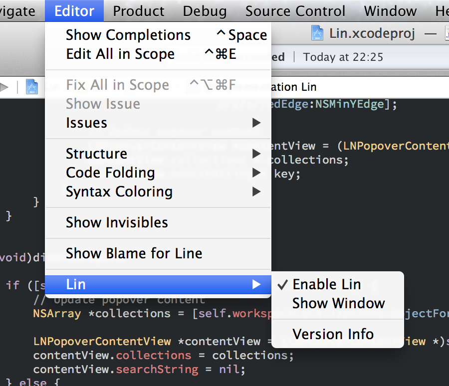 Lin will be installed in ~/Library/Application Support/Developer/Shared/Xcode/Plug-ins