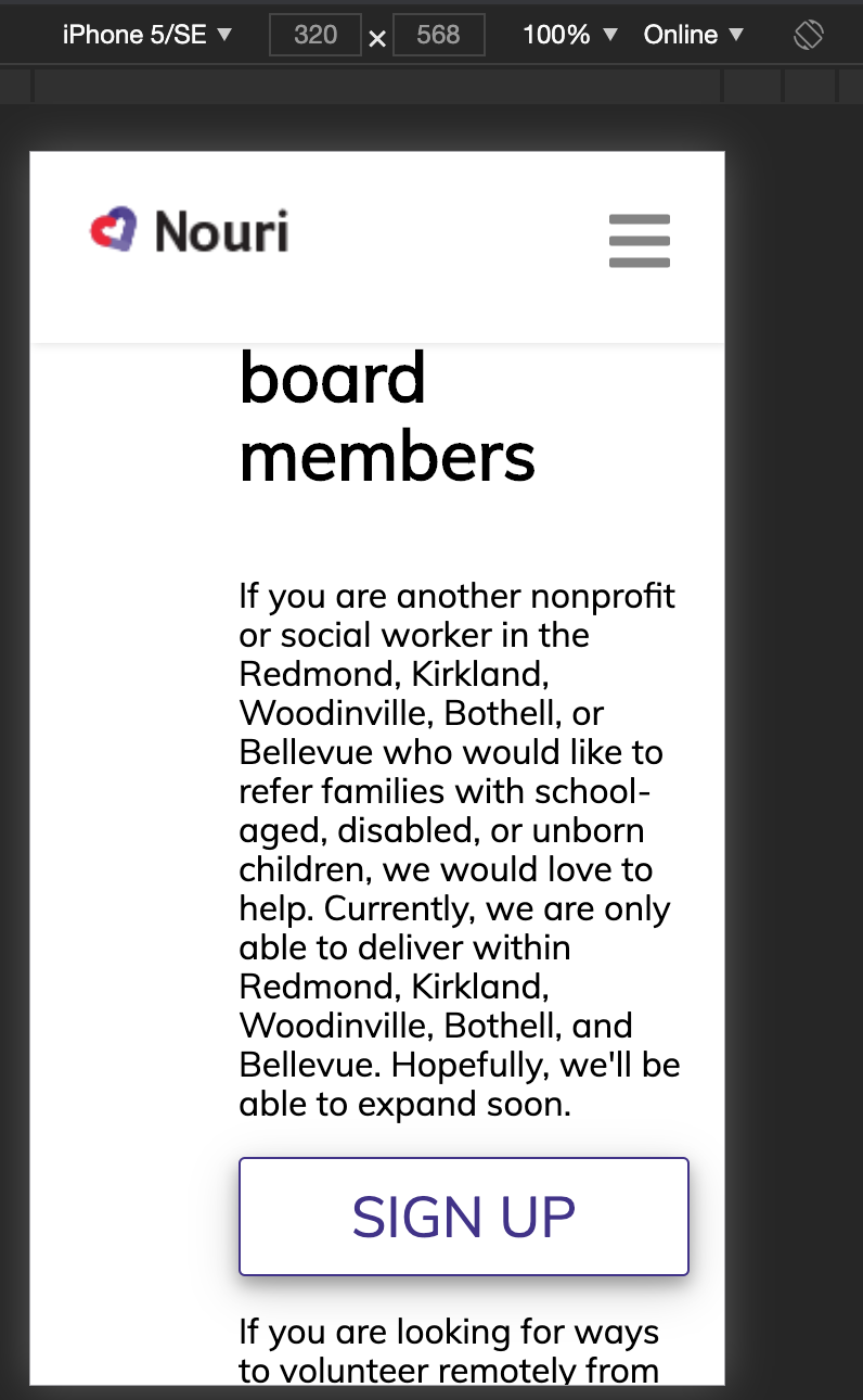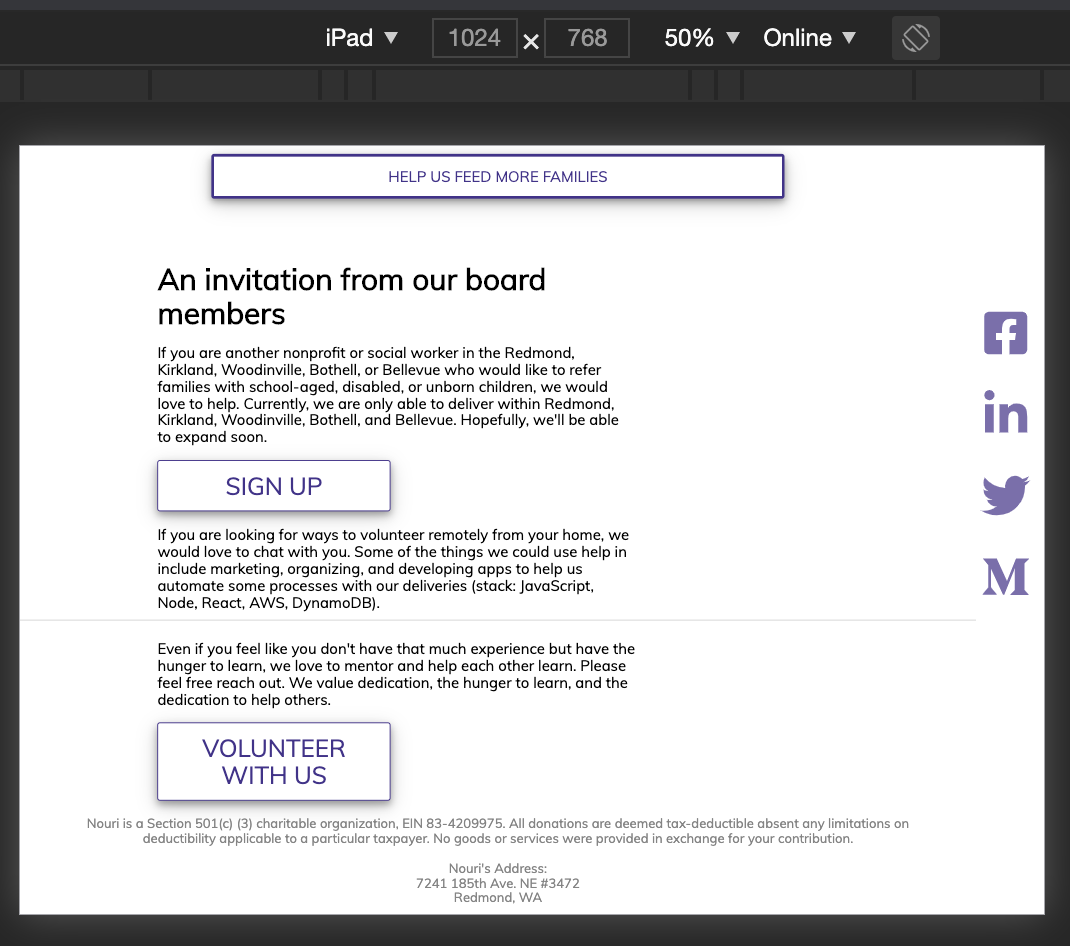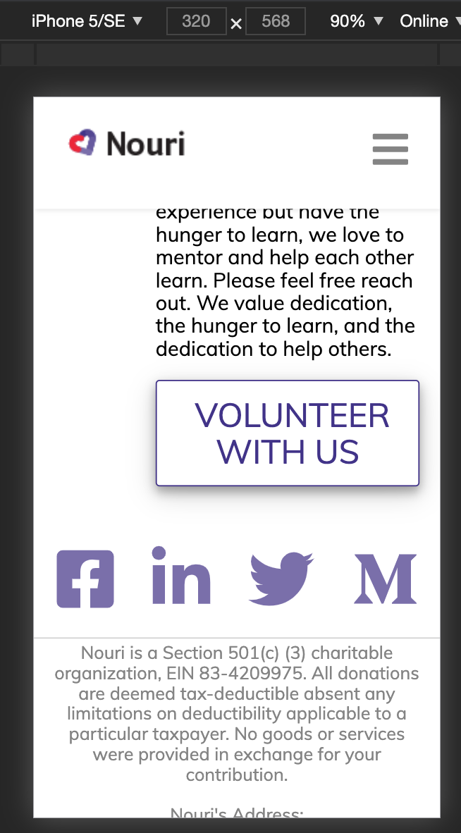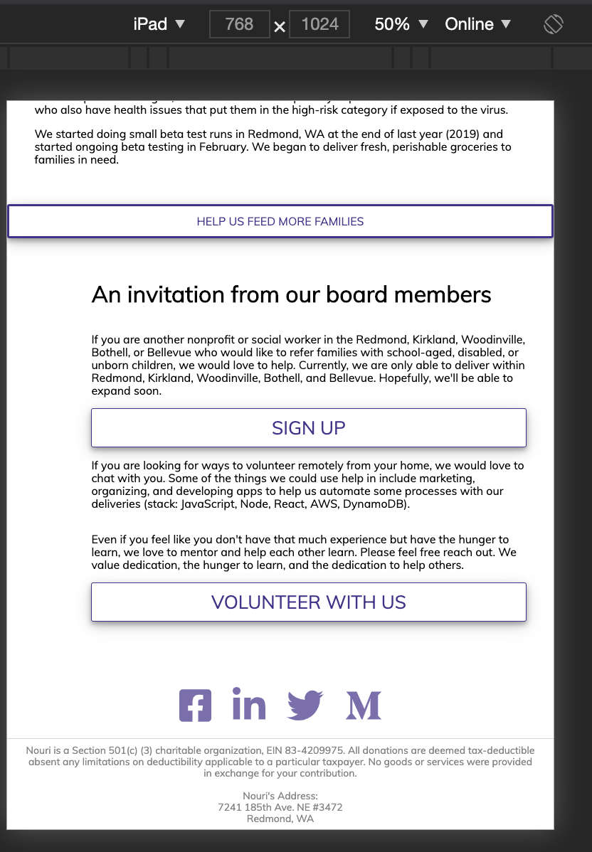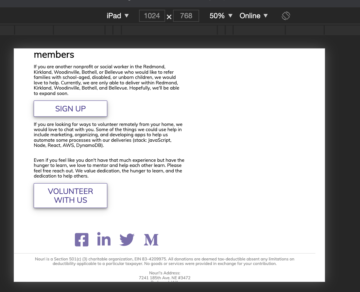 @rhtaylor Much improved on mobile. 👏 Some more feedback and refinement: Let's have the pictures show up on earlier on 1024 width.The funkiness at the bottom for larger screens is still overflowing to the right. You can see the border of the top bar ending earlier than the screen. This is probably a matter of the widths of paddings, margins, element widths, and borders, not adding up to more than 100% of the total width. We can also work to center the icons on bigger screens. |