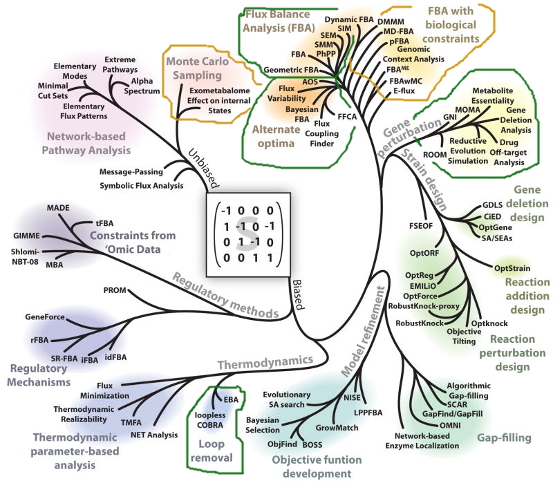 Based on Developer and Community surveys in 2017-2018 the following image emerged. Here green areas are in scope for inclusion into cobrapy and orange regions may be included but require additional discussion. Other regions are probably better suited in its own package or contributions to other OpenCOBRA python packages.
