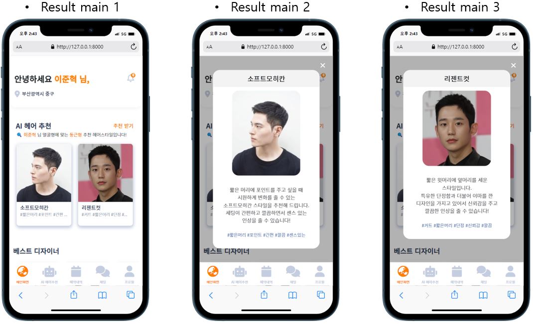 - AI 모델을 활용한 헤어스타일 추천 서비스