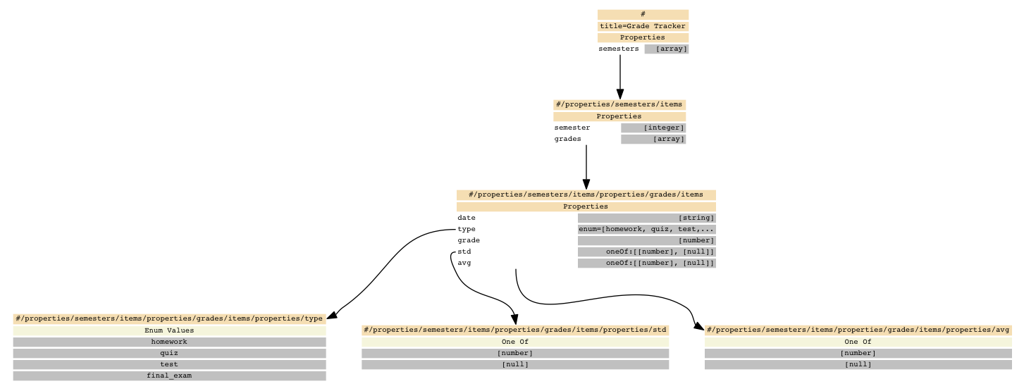 "type" : { "enum" : [ "homework", "quiz", "test", "final_exam" ] },