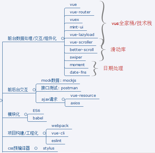 3)使用Vue全家桶+ES6+Webpack等前端最新最热的技术