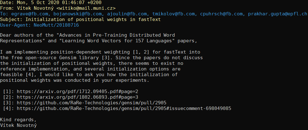 @Witiko could you check https://groups.google.com/g/gensim/c/5mAeWrQN7lg/m/7Ul-uMJWBAAJ please? (FYI, in case you're not getting the mailing list notifications). Thanks! |