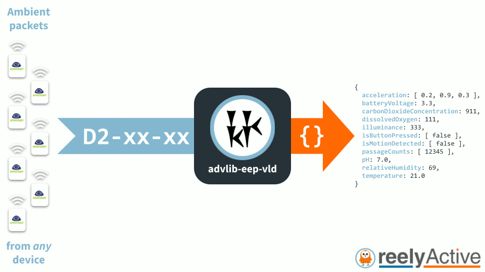 Wireless advertising packet decoding library for EnOcean Equipment Profiles of variable-length data (VLD). advlib-eep-vld is typically used as a library for advlib-esp which itself is commonly a processor module of the protocol-agnostic advlib.