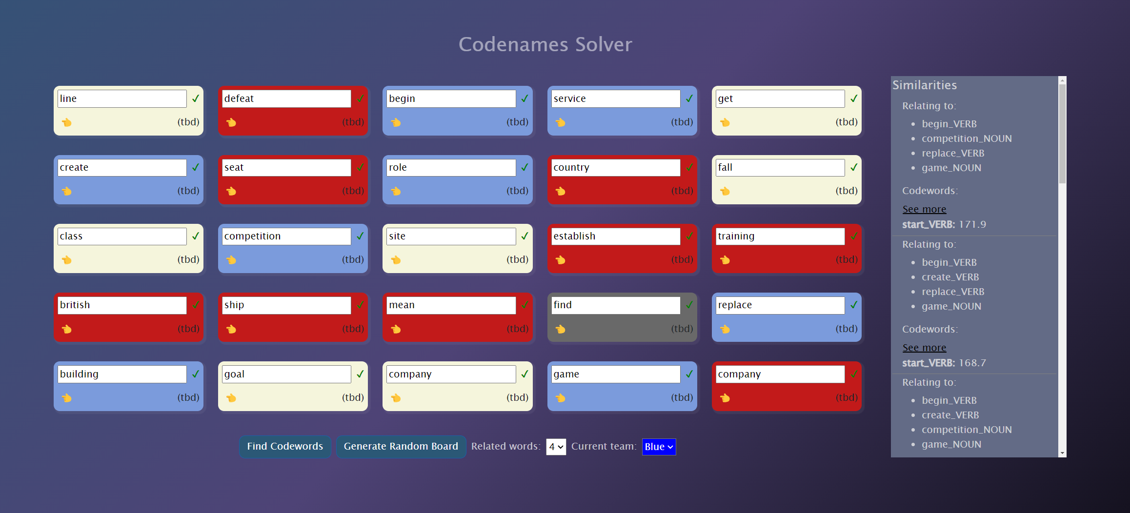 Create a board state, specify the number of related words desired, specify the team colour - send this to a controller.
