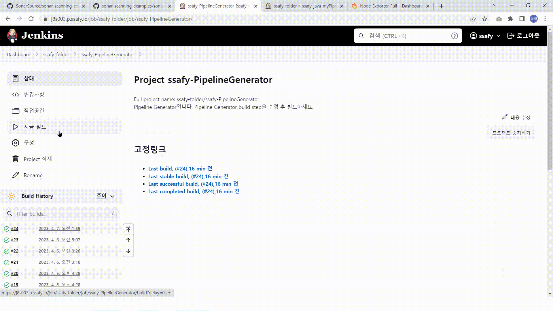 - 생성된 Job을 이용하여 빌드를 실행합니다.