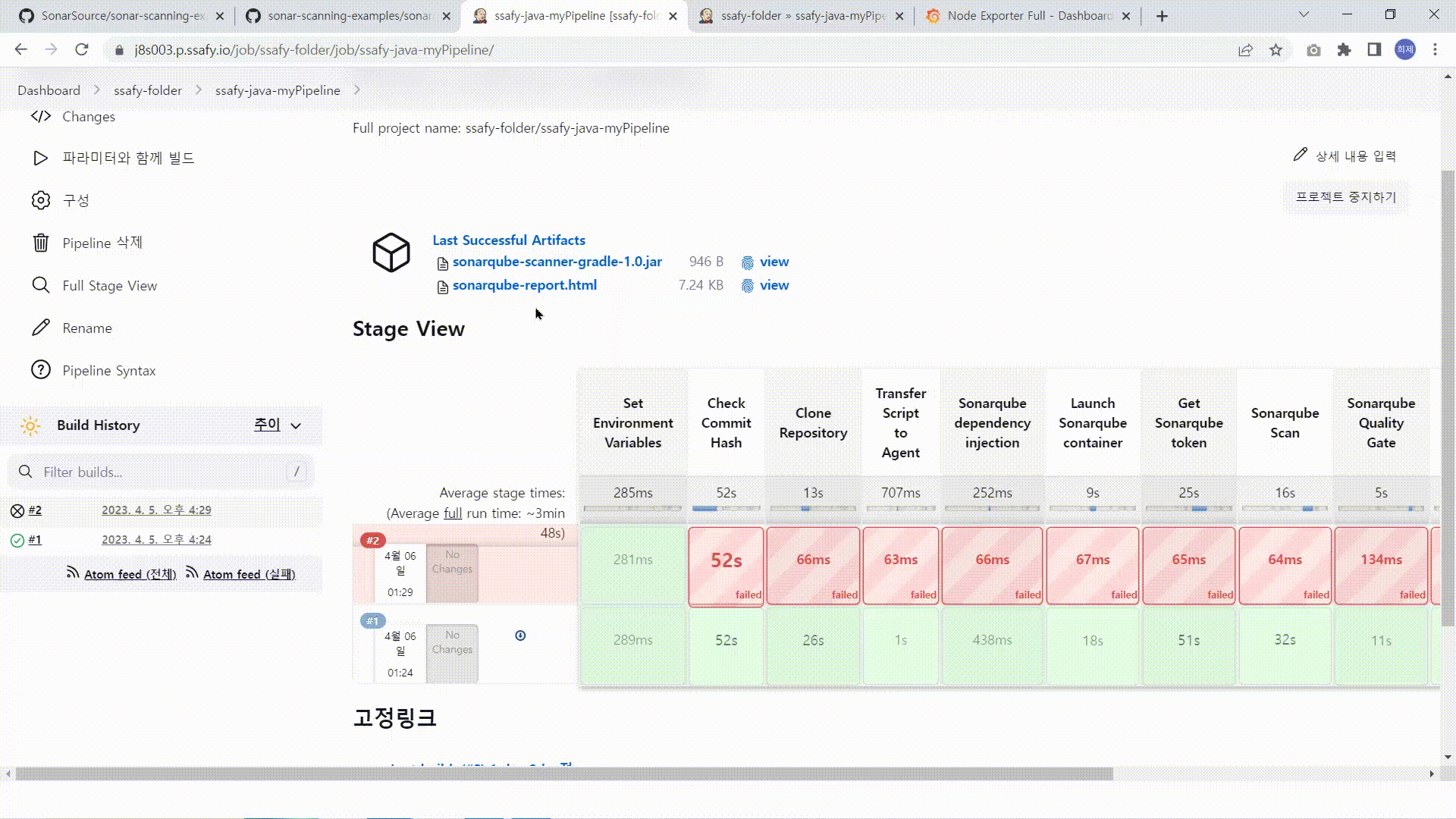- 빌드가 성공적으로 이루어졌다면 SonarQube 검사 결과에 대한 정보를 확인할 수 있습니다.