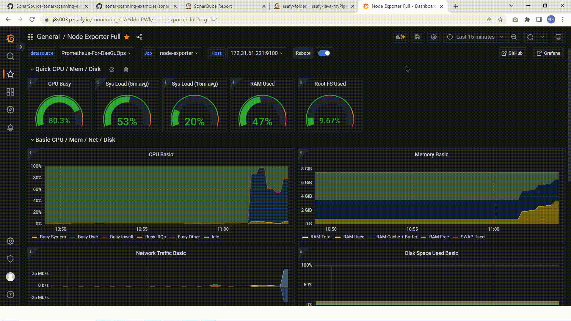 - Grafana & Prometheus를 이용하여 빌드 서버 모니터링 및 시각화