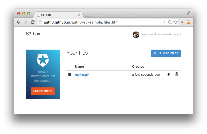 This sample uses Auth0 and its integration with AWS APIs (S3, SES, DynamoDB, EC2, etc.) in combination with the powerful IAM policies.