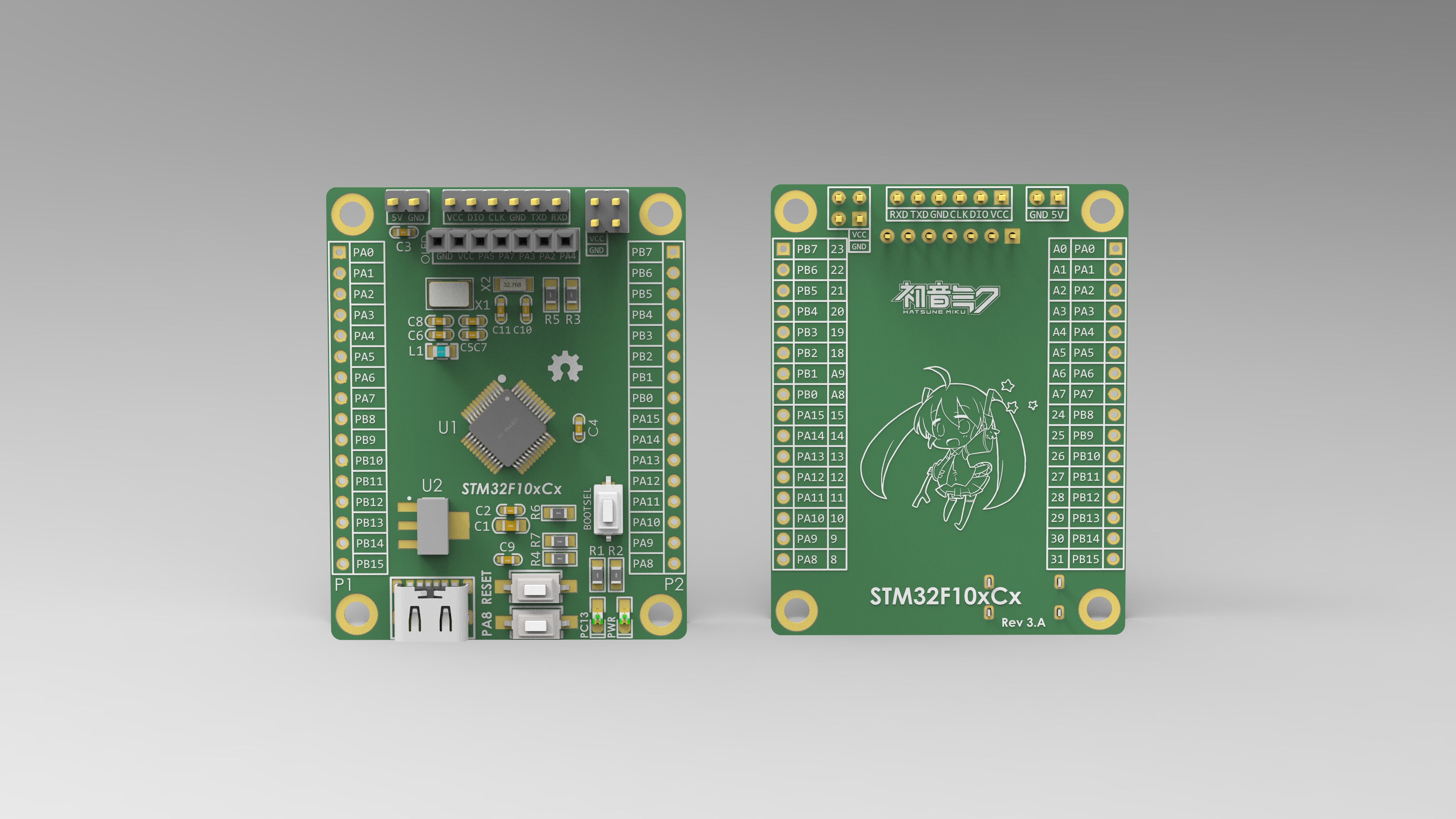 The hardware supports STM32F103CxTx and all pin-to-pin chips supplied by other manufacturers. Also compatible with STM32FEBKCxTx.