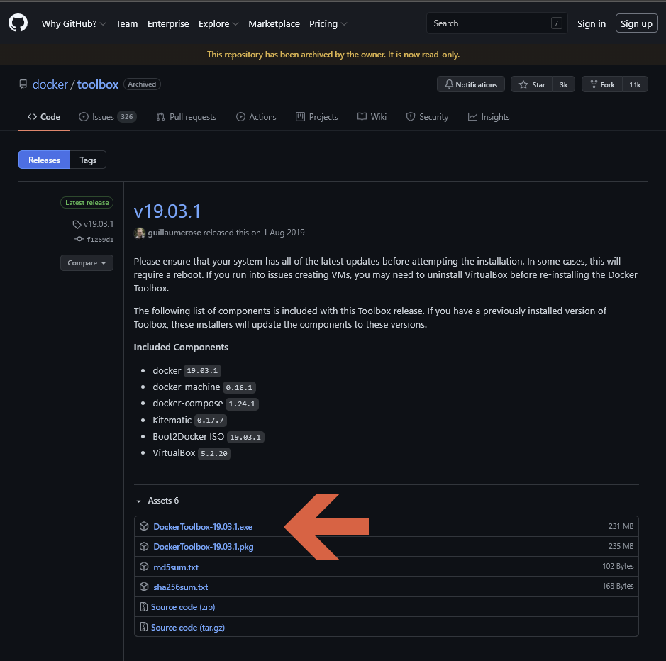 다운로드 URL : https://github.com/docker/toolbox/releases