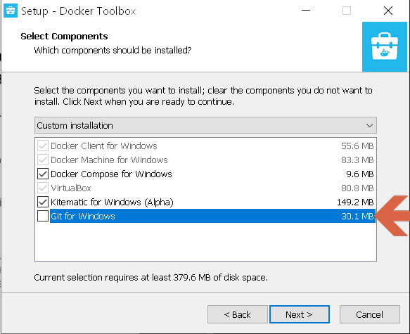 선택화면에서 "Git for Windows" 는 선택하지 않는다.