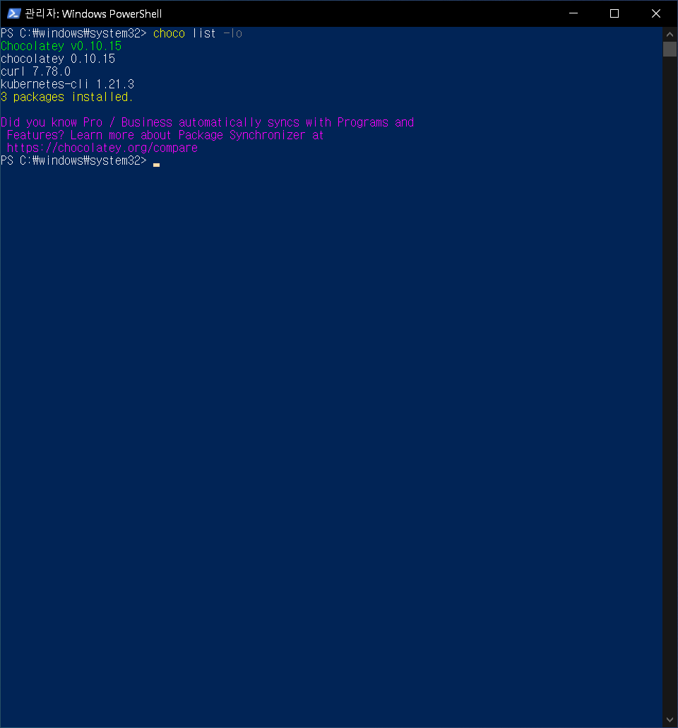 Chocolatey 는 Window의 패키지 매니저 이다. Linux 의 yum 이나 Mac의 brew 와 동일한 역할을 하는 패키지 관리 소프트웨어이다.