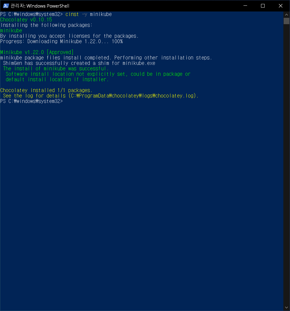 minikube 1.0 버전부터 Chocolatey 를 이용하여 설치가 가능하다.