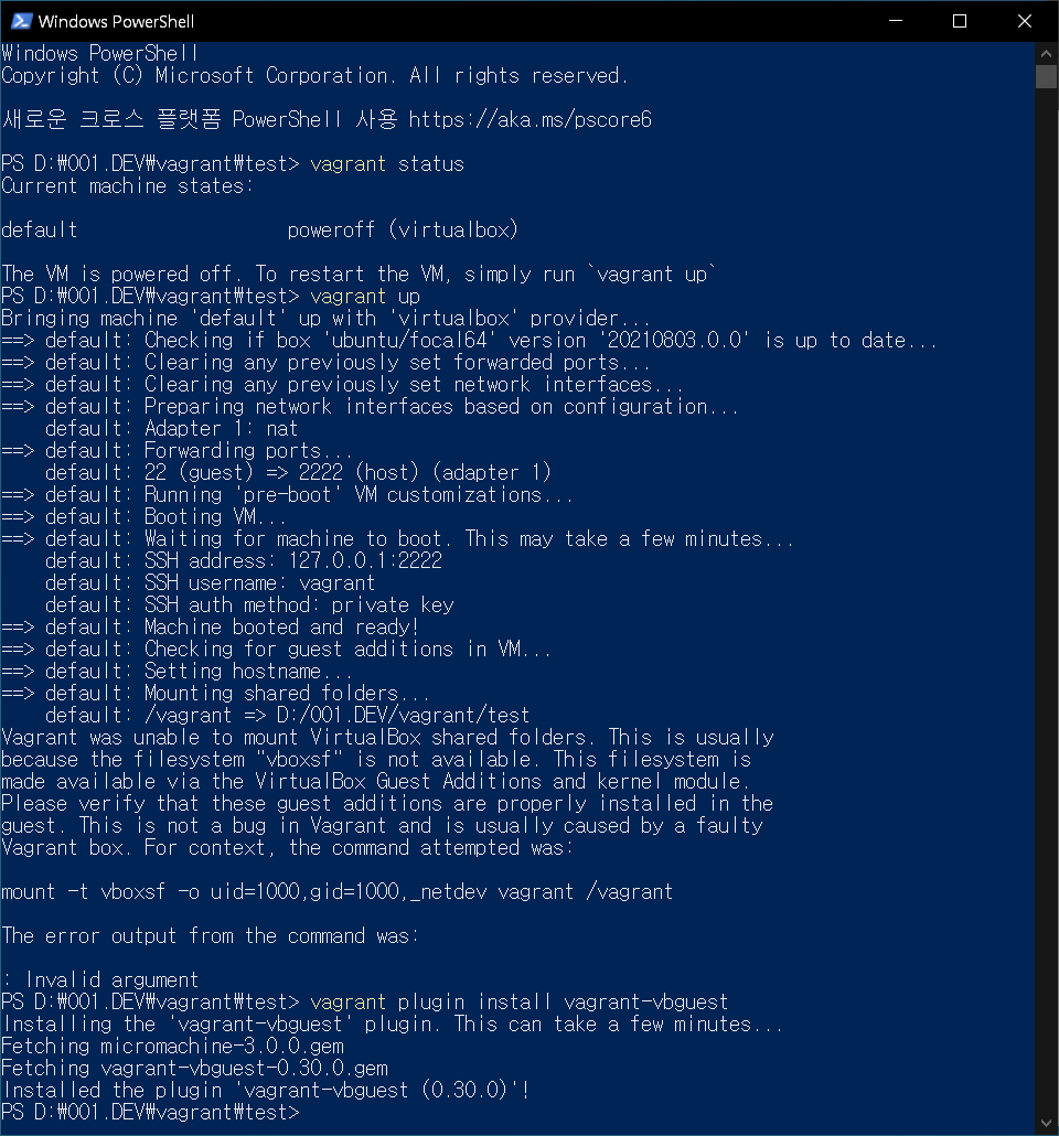 해결 방법 : vagrant-vbguest 플러그인 설치