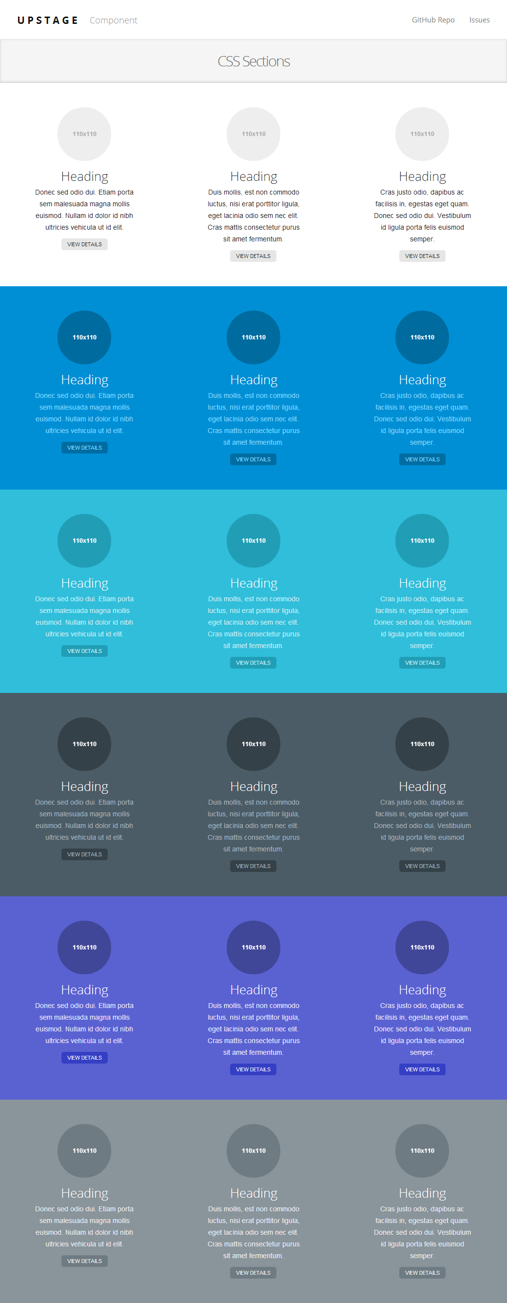 CSS component for adding varied sections of content to a web page. From the Upstage component library.