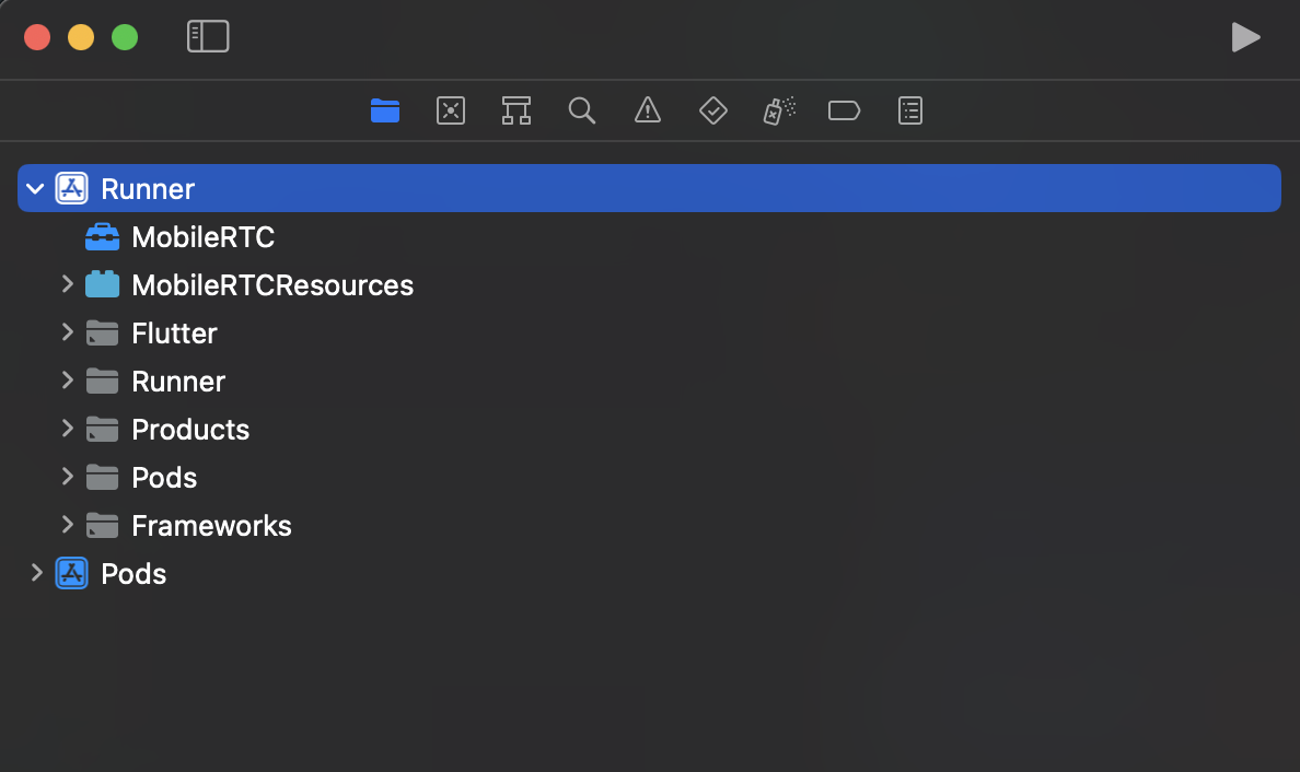 is added in TARGETS/Runner/Frameworks,Libraries, and Embedded Content