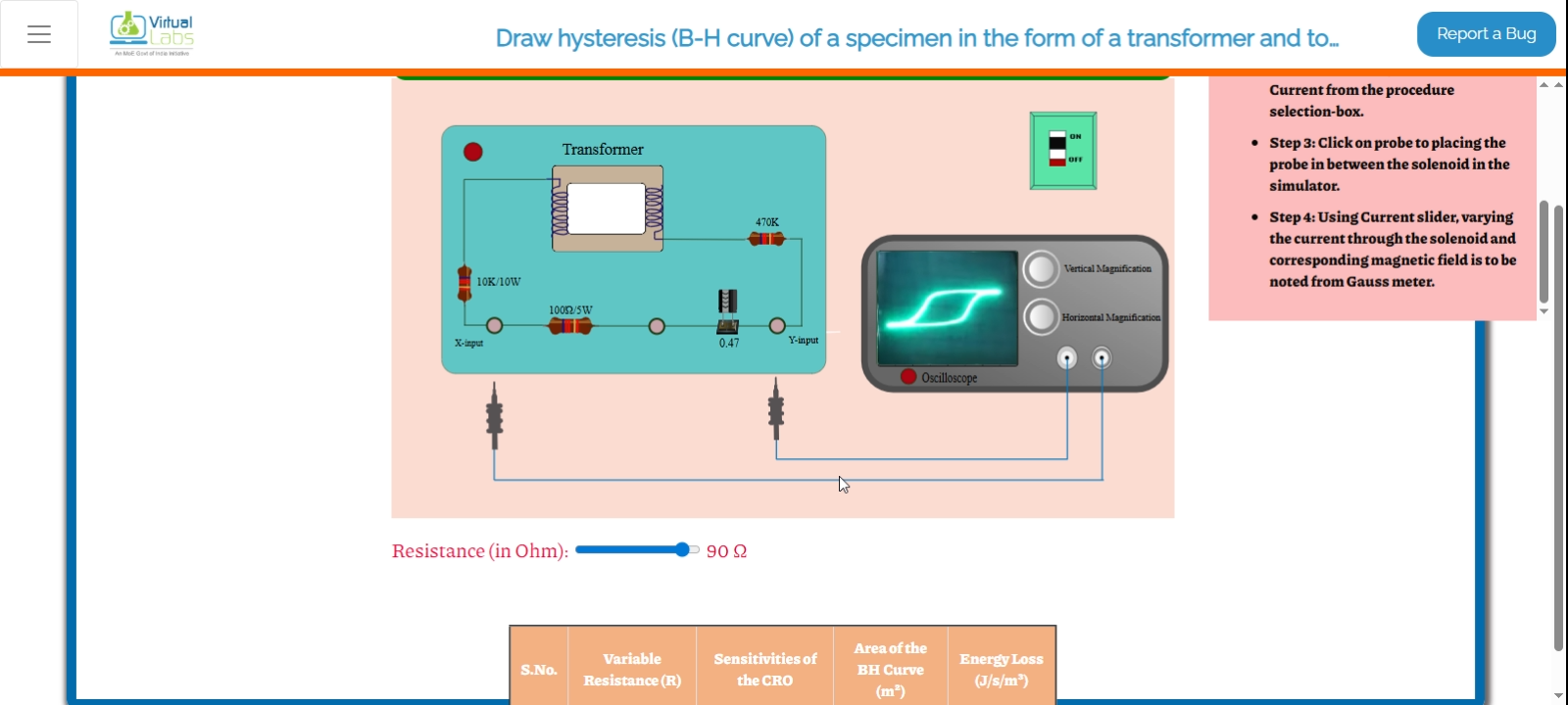 Experiment Link - https://bop2-iitk.vlabs.ac.in/exp/hysteresis-loss/simulation.html