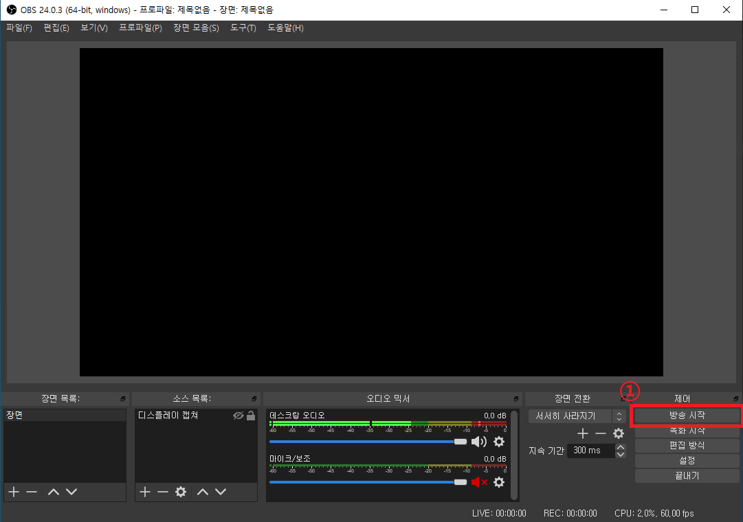 - nginx.exe 실행 상태에서 우측 하단의 '방송 시작' 버튼 클릭