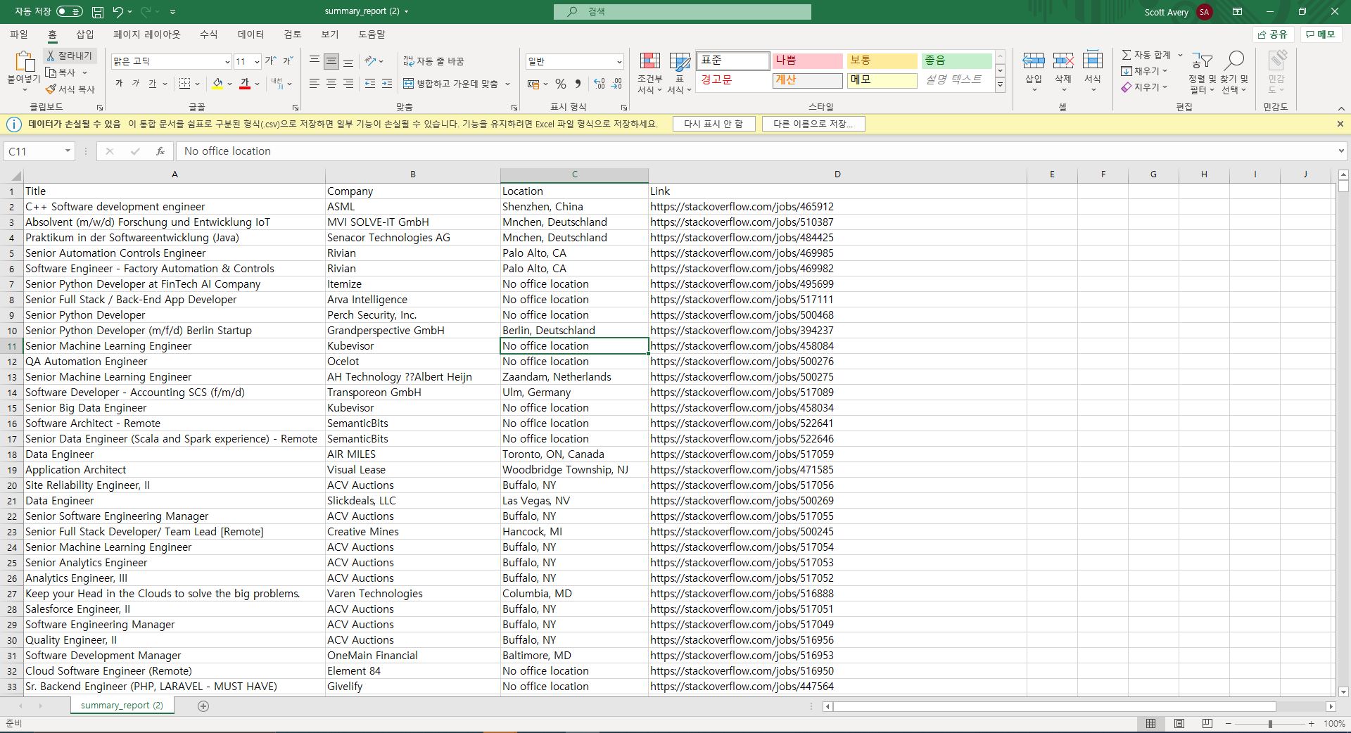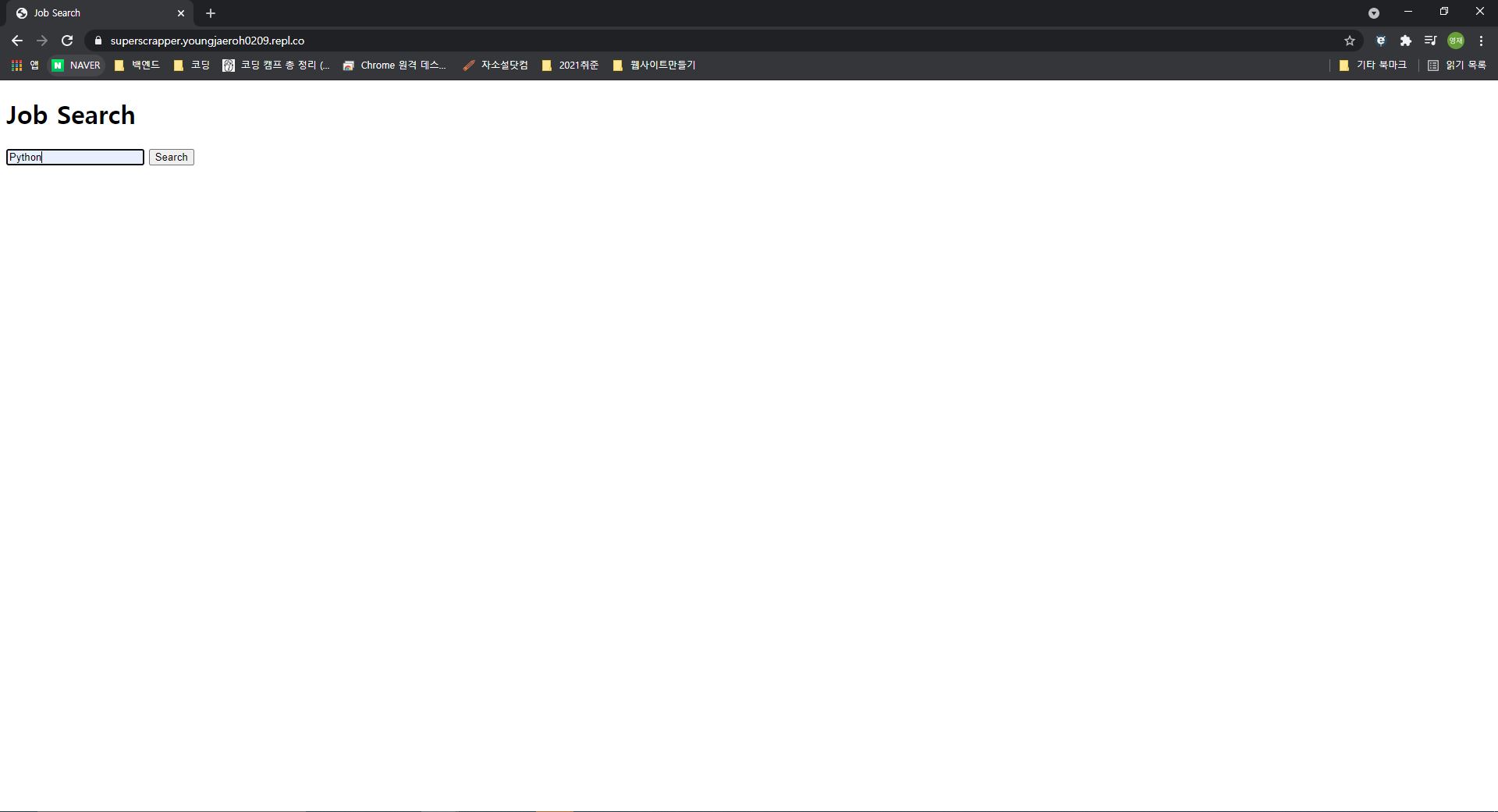 - 잠시 후 파이썬에 대한 구직글을 stackoverflow 에서 스크랩핑해서 보여줍니다.